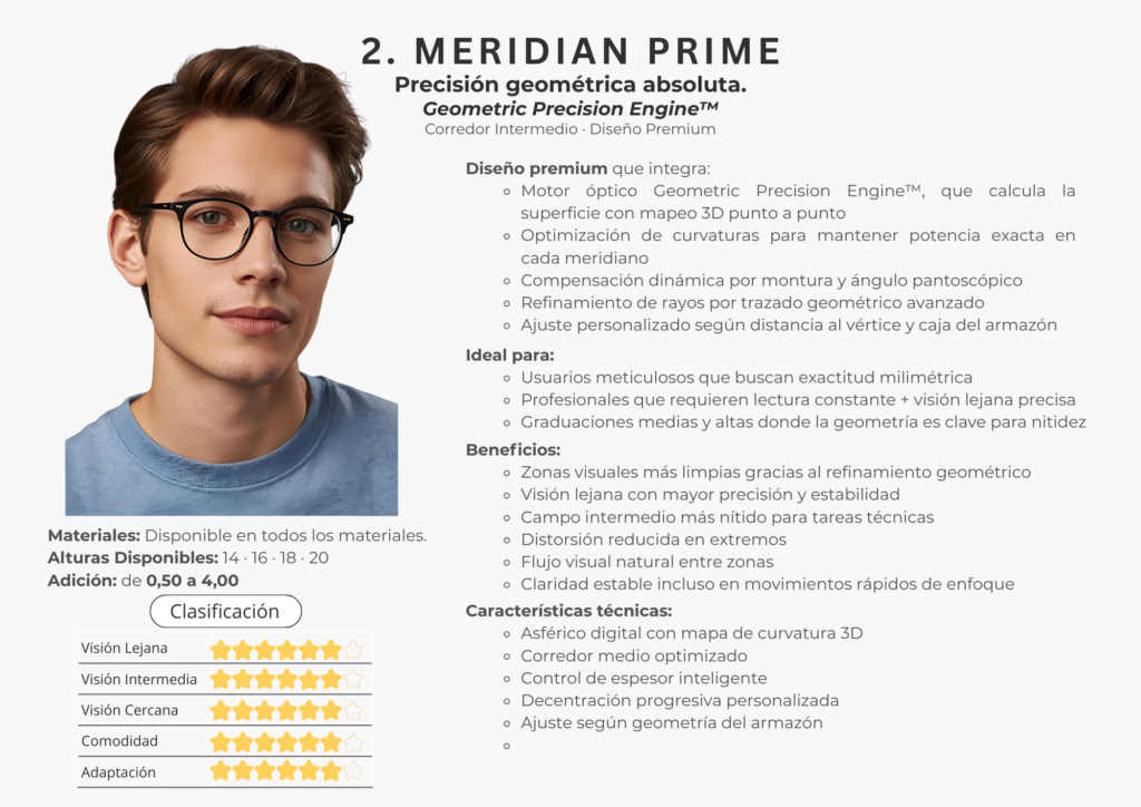 Cada diseño Meridian está creado bajo altos estándares de calidad, integrando cálculos avanzados, compensación digital y control óptico refinado.